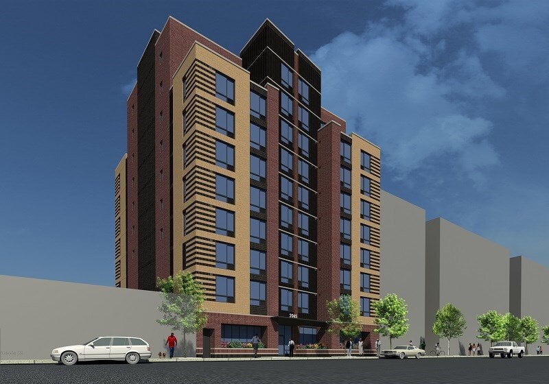 A 10-story residential 92-unit building is going up at 2065 Walton Avenue. 60 percent of the apartments will go to homeless veterans, with the remainder going to homeless youth between the ages of 18 and 25.